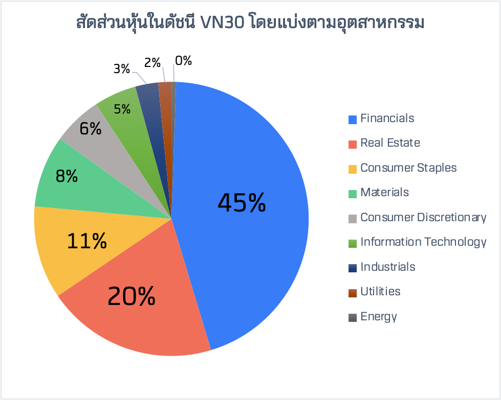 เมื่อเจาะลึกหุ้น 30 บริษัทชั้นนำบนดัชนี VN30 จะเห็นได้ว่า...บริษัทส่วนใหญ่จะประกอบธุรกิจโดยมีสัดส่วนอยู่ในกลุ่มอุตสาหกรรม ดังนี้