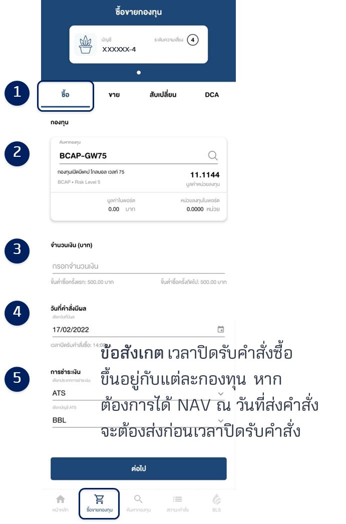 5. ระบุชื่อกองทุนที่ต้องการซื้อ