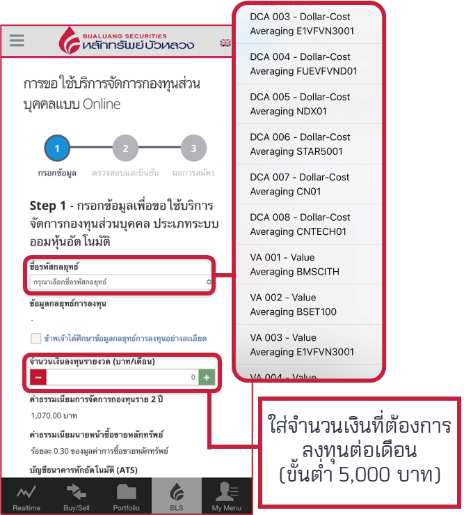 สมัครง่าย ๆ ผ่านแอป Streaming บนเมนู BLS > ระบบออมหุ้นอัตโนมัติ พร้อมให้คุณเริ่มต้นออมอย่างมีวินัย เดือนละ 5 พันบาท