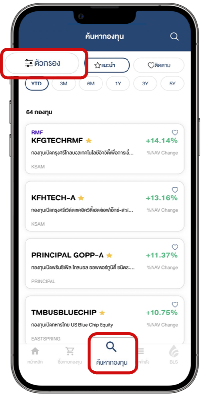 ค้นหากองทุนก่อนซื้อขายโดย กรองคุณสมบัติ นโยบายการลงทุน, กองประหยัดภาษี, นโยบายการจ่ายปันผล, กองตราสารต่างประเทศ, ระดับความเสี่ยง และ บลจ. ที่ต้องการ