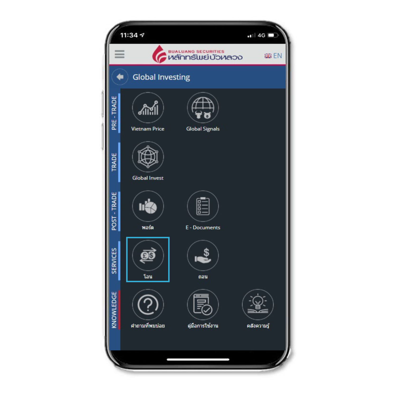 ส่งคำสั่งโอนเงินไปลงทุนต่างประเทศ ผ่าน Smartphone
