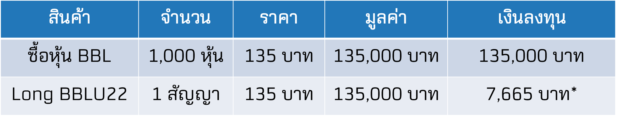 หมายเหตุ: นักลงทุนไม่สามารถส่งคำสั่ง Block Trade ได้ด้วยตนเองและต้องทำการปิดสัญญากับหลักทรัพย์บัวหลวงเท่านั้น โดยจะไม่สามารถปิดสัญญาเองในตลาด TFEX หรือกับ Market Maker รายอื่นได้