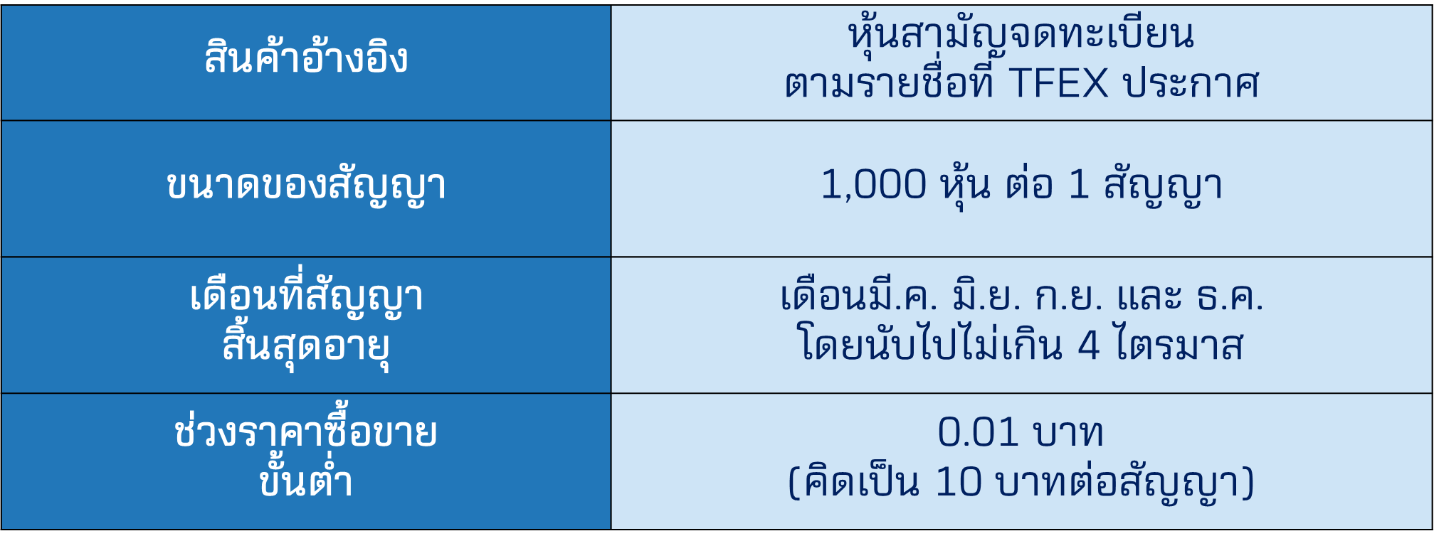 ข้อมูลลักษณะสัญญาของ Single Stock Futures