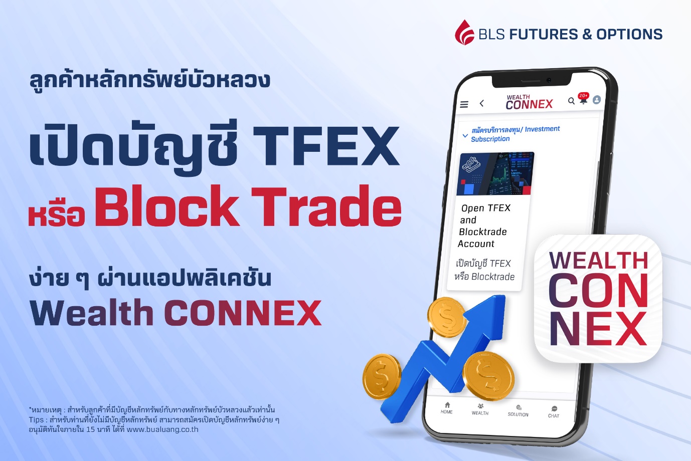 สำหรับท่านที่มีบัญชีหุ้นกับหลักทรัพย์บัวหลวง สามารถเปิดบัญชี TFEX ได้ง่าย ๆ ผ่านแอปฯ Wealth CONNEX หรือ อ่านรายละเอียดเพิ่มเติมได้ที่นี่