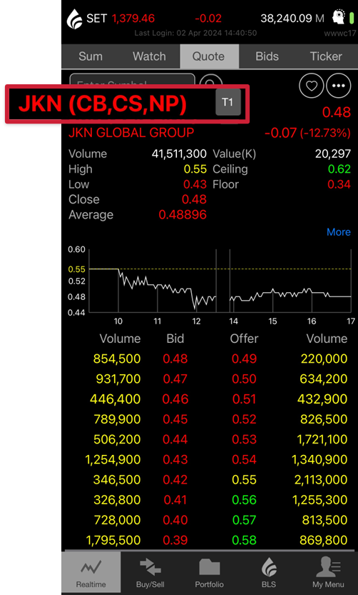 3. T3 คือ จะขึ้นเครื่องหมาย P ซึ่งห้ามซื้อขายชั่วคราว 1 วันทำการ (เฉพาะวันแรก) เมื่ออนุญาตให้ซื้อขายจะมีเงื่อนไขตาม T2