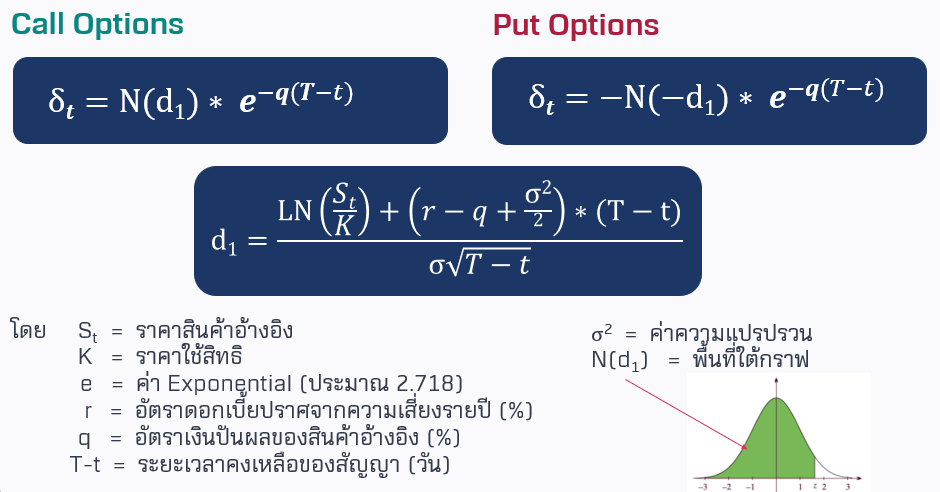 Delta (δ) แสดงถึงความสัมพันธ์ระหว่างราคาสินค้าอ้างอิง และราคา Options